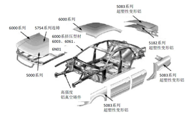 不同型號(hào)鋁在車身上的應(yīng)用(來(lái)源:汽車材料網(wǎng)、光大證券研究所)